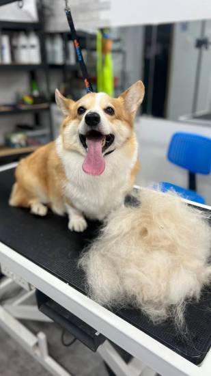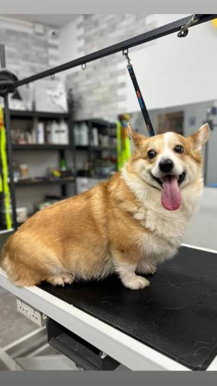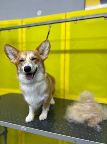 В салоне можно записать собаку породы вельш корги на мытье и экспресс линьку.